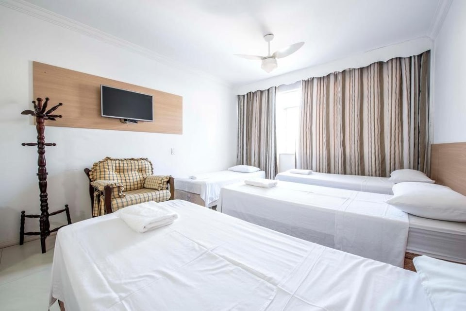 Location Want to save money while travelling? It’s easy! Hotel «Hotel Santiago Centro» is located in Teresopolis. This hotel is located 1 km from the city center. You can take a walk and explore the neighbourhood area of the hotel. Places nearby: Museu do Amanhã, AquaRio and National Fine Arts Museum.At the hotel Want to be always on-line? Wi-Fi is available. If you travel by car, there’s a parking zone. At the guests’ disposal, there’s also a laundry and ironing. The staff of the hotel will be happy to talk to you in Spanish.Room amenities Here’s what you’ll find in the room to have a rest after a long day: a shower, a TV and a mini-bar. Please note that the listed services may not be available in all the rooms.