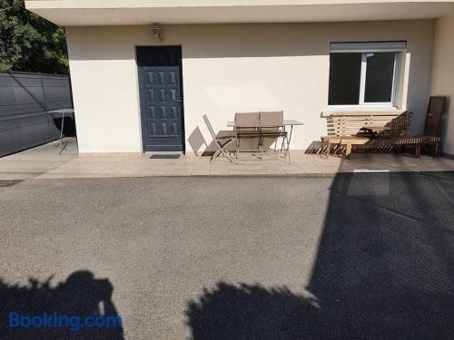 Charmant appartement au rez de jardin d'une maison, a property with a garden, is located in Divonne-les-Bains, 19 km from United Nations Geneva, 21 km from Gare de Cornavin, as well as 21 km from CERN.