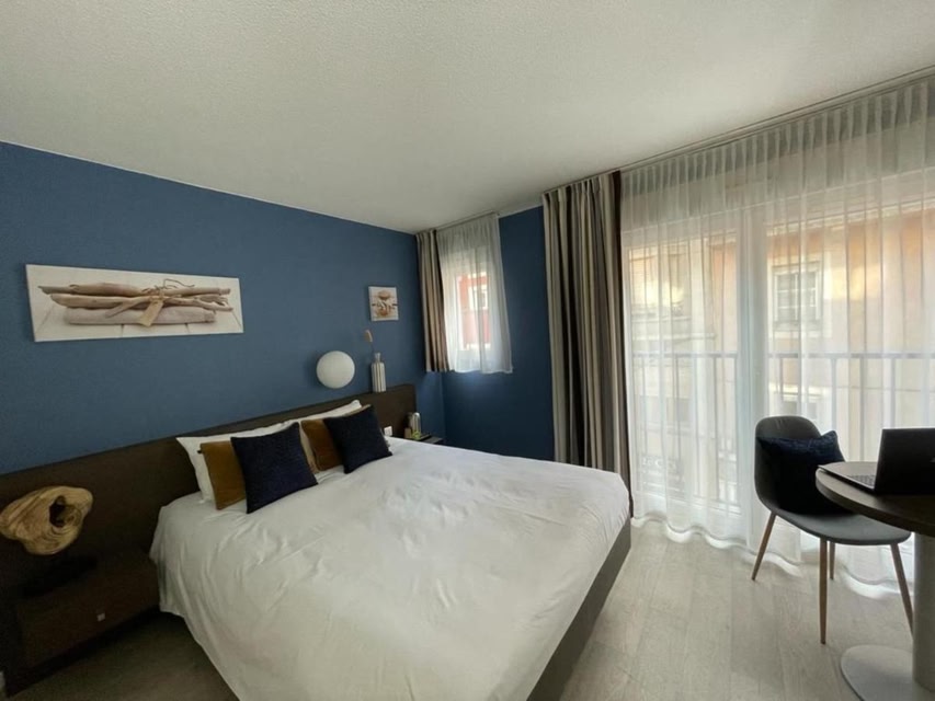 The Residence Les Baladines is located at the centre of Thonon-les-Bains, beside Lake Geneva in the Rhone Alpes region. It offers rooms and studio apartments with free Wi-Fi internet access.