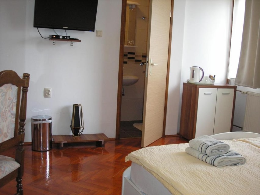 Tranquil Garden SettingEscape to Guesthouse Vila, nestled in a serene garden with a soothing fountain and colorful flowers.Comfortable AccommodationsEach room and studio at our property boasts a private entrance, cozy seating area, TV, and a well-appointed bathroom with complimentary toiletries.Convenient AmenitiesOur self-catering studio is equipped with a kitchen featuring all the essentials for a delightful stay, including a stovetop, electric kettle, kitchenware, and a dining area.Ready to experience the beauty of Slunj? Book your stay at Guesthouse Vila now and enjoy free WiFi, private parking, and easy access to Plitvice Lakes National Park.