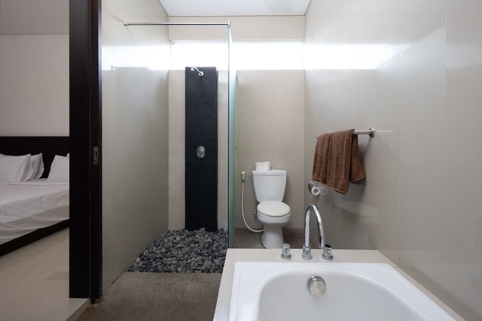 Outdoor Pool and Free Wi-FiTake a refreshing dip in the outdoor pool or stay connected with complimentary wireless internet access.Convenient AmenitiesEnjoy free self-parking, air-conditioned villas with a refrigerator, microwave, shared kitchen, and private bathroom with complimentary toiletries.Prime LocationLocated in Canggu (Berawa), just a short drive from popular attractions like Eat Street and Seminyak Square. The nearest major airport is only 17.7 km away.Book your stay now for a relaxing and convenient experience at our Canggu villa!