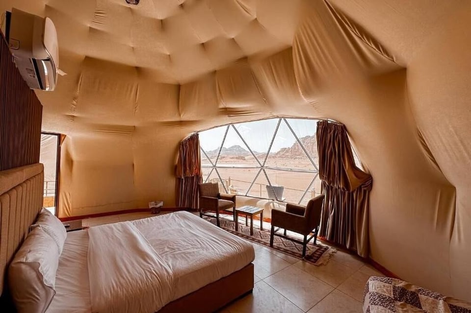 Wadi Rum Santa Camp in Wadi Rum features 5-star accommodation with a terrace. Among the facilities of this property are a restaurant, room service and a 24-hour front desk, along with free WiFi throughout the property. The hotel has family rooms.