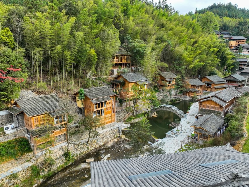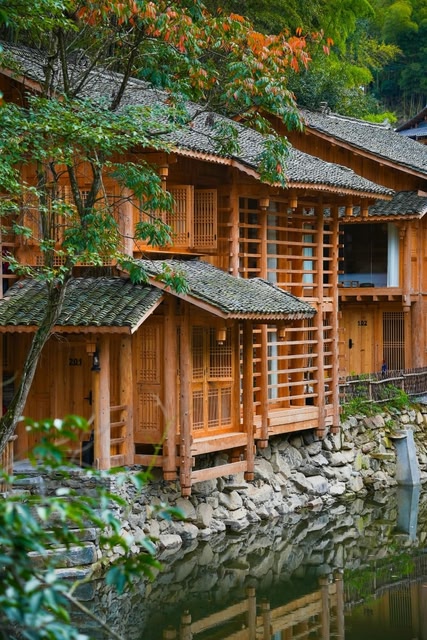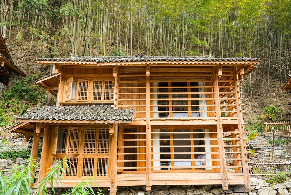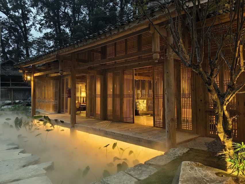 The homestay is situated in Lower Dali Dong Village, nestled along the Lidong Stream. On one side of the stream stand eight guestroom buildings, while the opposite bank houses the reception area, café, and restaurant. The architectural design ingeniously incorporates traditional Dong structural elements, where each window frame offers a unique view, and every courtyard blooms with lush greenery. Guests can gaze upon bamboo forests by simply opening a window or marvel at starry skies with a glance upward. Featuring scenic viewing terraces and duplex lofts, the warm wooden furnishings indoors create a cozy ambiance. The Lidong Stream meanders past the doorstep, inviting guests to watch the sun dip below the horizon from the courtyard and quietly await the moonrise. Amid the tranquil nightscape, all weariness and worries dissolve. Here, everything embodies the authentic essence of village life. Each room is equipped with central air conditioning, underfloor heating, and premium amenities. The accommodation package includes breakfast, afternoon tea, dinner, butler service, and luggage transfer. With meticulous hospitality, we offer travelers a serene and unforgettable retreat!