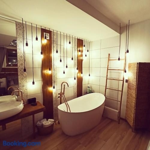 Featuring a garden and a bar, GÓRNA VIBES provides accommodation in Jugowice with free WiFi and garden views. The property is soundproof and is located 21 km from Świdnica Cathedral.