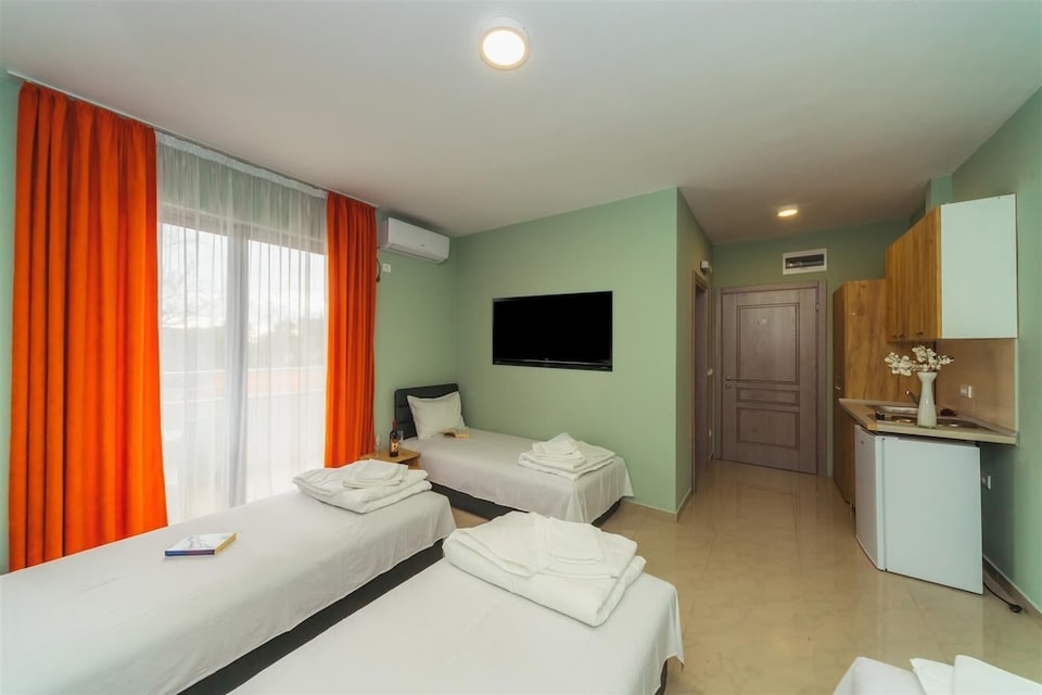 HeadLine : In Canj Location : Located in Canj, ApartHotel Solaris is within a 15-minute drive of Tabija Fortress and Sutomore Beach. This aparthotel is 5.6 mi (9 km) from Roman mosaics and 5.6 mi (9 km) from Elijah’s Church. Rooms : Make yourself at home in one of the 32 air-conditioned rooms featuring kitchenettes. Complimentary wireless internet access keeps you connected, and cable programming is available for your entertainment. Conveniences include refrigerators, and housekeeping is provided daily. CheckIn Instructions : Extra-person charges may apply and vary depending on property policy Government-issued photo identification and a credit card, debit card, or cash deposit may be required at check-in for incidental charges Special requests are subject to availability upon check-in and may incur additional charges; special requests cannot be guaranteed This property only accepts cash Host has not indicated whether there is a carbon monoxide detector on the property; consider bringing a portable detector with you on the trip Host has not indicated whether there is a smoke detector on the property Special Instructions : The front desk is open daily from 8:00 AM - 8:00 PM. To make arrangements for check-in please contact the property at least 48 hours before arrival using the information on the booking confirmation. If you are planning to arrive after 3:00 PM please contact the property in advance using the information on the booking confirmation. Guests must contact the property in advance for check-in instructions. Front desk staff will greet guests on arrival. Disclaimer notification: Amenities are subject to availability and may be chargeable as per the hotel policy.