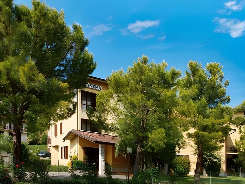 At an altitude of 1600 ft, Hotel Astra is reached by a panoramic road overlooking Lake Garda. The grounds include a swimming pool, and parking is free. All rooms at the Astra Hotel come with satellite TV and a balcony. Rooms offer views of the grounds and green surroundings. The restaurant serves local specialties. Breakfast is buffet style. The Astra is located in a quiet area outside the center of Tignale. Trekking and mountain bike paths start from nearby.