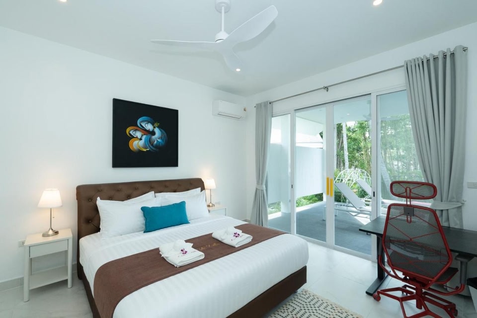 Situated in Hinkong, 1.1 km from Hin Kong Beach, Osho Villas has a garden, parking on-site and rooms with free WiFi access. The property features pool and garden views, and is 4.7 km from Phaeng Waterfall. The villa has family rooms.