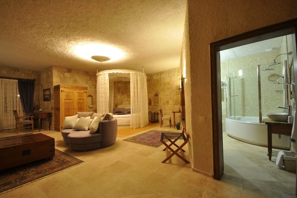 With a stay at Goreme Inn Hotel - Adults Only, you'll be centrally located in Nevşehir, steps from Göreme National Park and within a 5-minute drive of Goreme Open Air Museum. This hotel is 1 mi (1.6 km) from Love Valley and 2.2 mi (3.5 km) from Uchisar Castle. Take advantage of recreation opportunities such as bicycles to rent or take in the view from a rooftop terrace and a garden. Additional amenities at this Art Deco hotel include complimentary wireless internet access, concierge services, and ski storage. Guests can catch a ride on the shuttle (surcharge), which operates within 100 kilometers. Grab a bite to eat at the hotel's restaurant, where you can take in the garden view, or stay in and take advantage of the 24-hour room service. A complimentary buffet breakfast is served daily from 8:00 AM to 10:00 AM. Featured amenities include a 24-hour business center, limo/town car service, and express check-in. A roundtrip airport shuttle is provided for a surcharge (available 24 hours), and free self parking is available onsite. Make yourself at home in one of the 15 individually decorated guestrooms. Your pillowtop bed comes with down comforters, and all rooms are furnished with twin sofa beds. Complimentary wired and wireless internet access keeps you connected, and satellite programming provides entertainment. Private bathrooms with bathtubs or showers feature rainfall showerheads and complimentary toiletries.